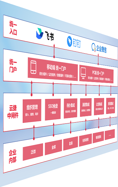 对协作平台提供支持服务,,支持企业应用与协作平台对接,,包含组织同步、、、、消息集成、、待办集成等。。。。支持目前主流的协作平台:钉钉、、、、企微和飞书。。。